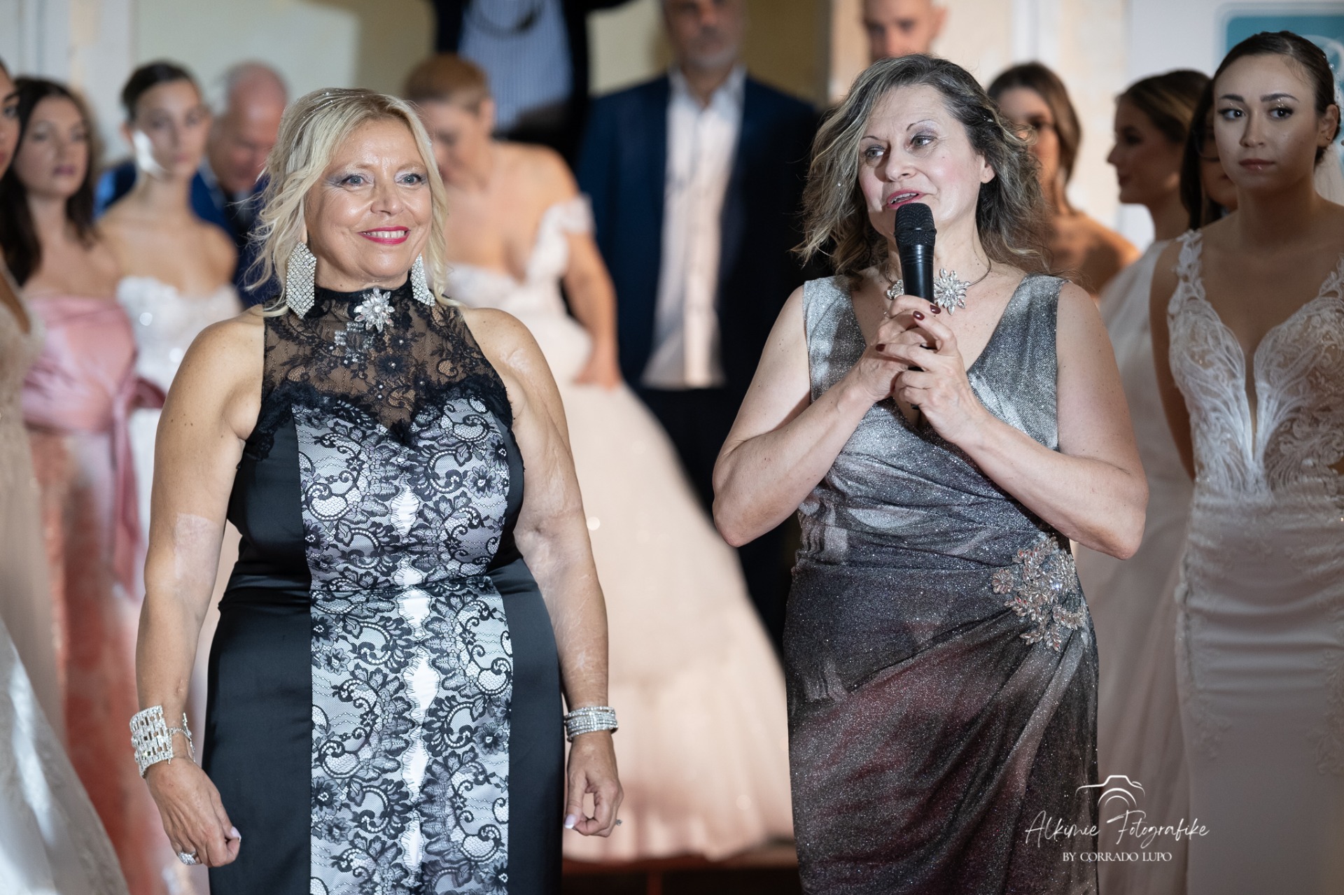 La sfilata di abiti da cerimonia ha compreso molteplici varietà di modelli, tessuti
